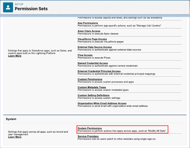 - Select System Permissions