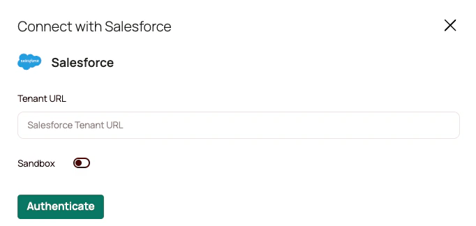 - Provide your Salesforce URL and click Authenticate.
