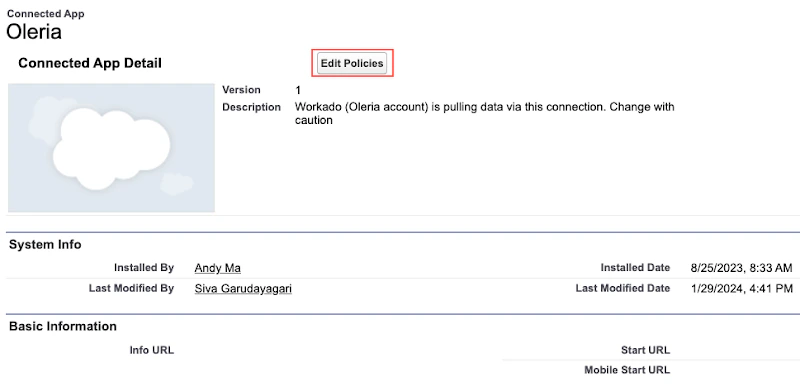 - After completing the Oleria app installation, select “Edit Policies”