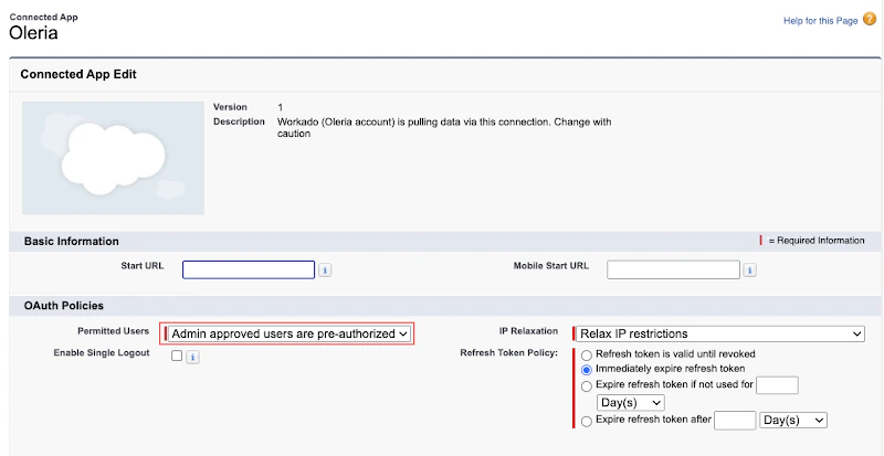 - Navigate to the OAuth Policies section, set Permitted Users to “Admin approved users are pre-authorized” and click the Save button.
