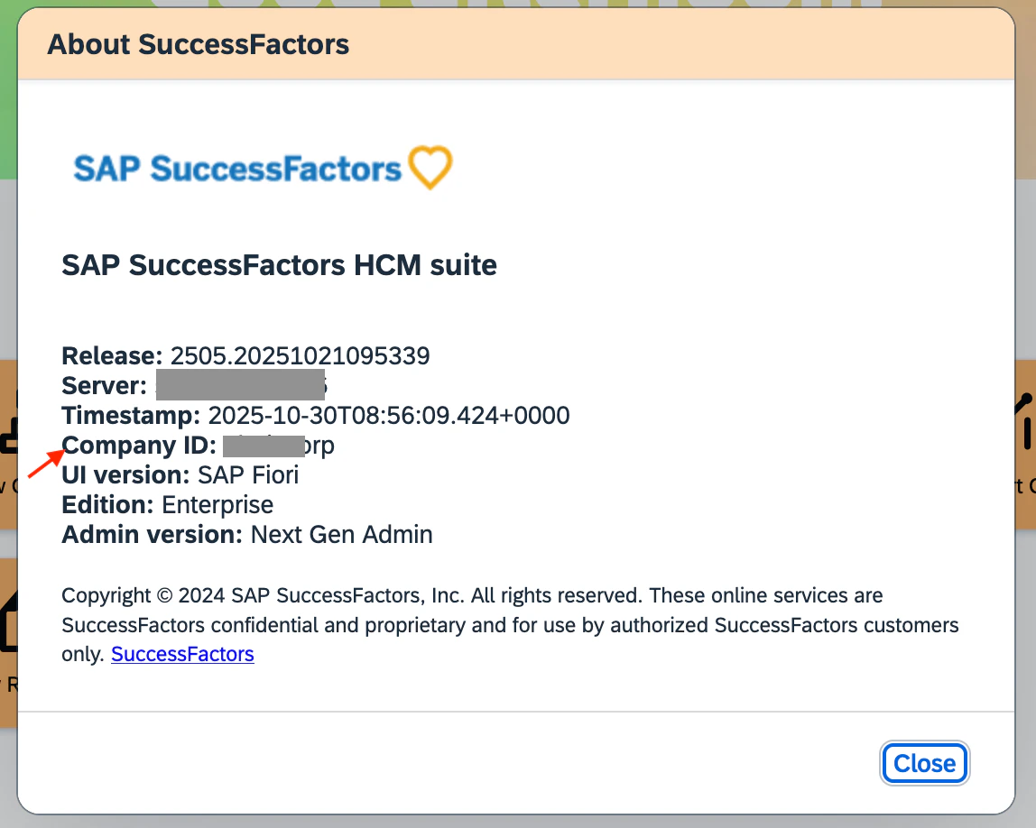 - Enter the company ID. You can find company ID by clicking on show version information from the profile drop down menu