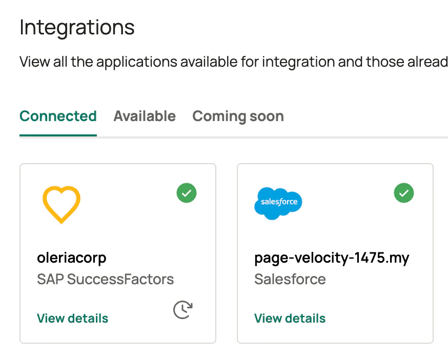Step 3: Verify the Success Factors integration status from the connected integrations page by clicking on view details