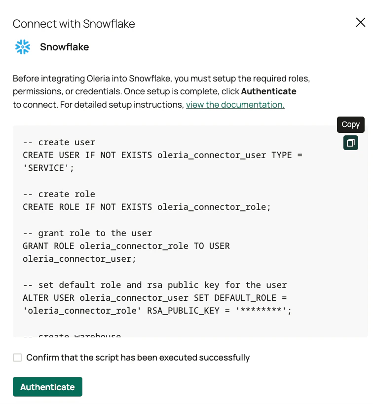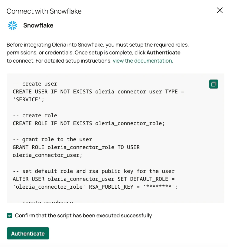 Integrate Snowflake with Oleria Workspace